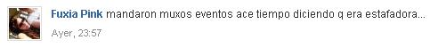 AUN ASI, YO MISMA HICE UN EVENTO EN TUENTI PARA VER SI ALGUIEN LA CONOCIA, Y BUENO, AUNQUE ALGUNAS DIJERON QUE ERA BUENA CHICA, TAMBIEN HUBO QUIEN DIJO QUE ERA UNA ESTAFADORA, TODAS SABEMOS QUE PRIMERO SE HACEN CON UNA LISTA PARA LUEGO PODER ESTAFAR A SU ANTOJO.