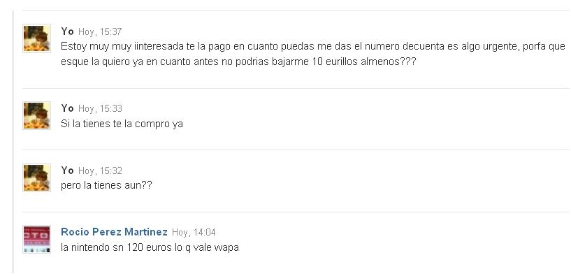 aqui os dejo capturas de como le decia a ella el precio y tal